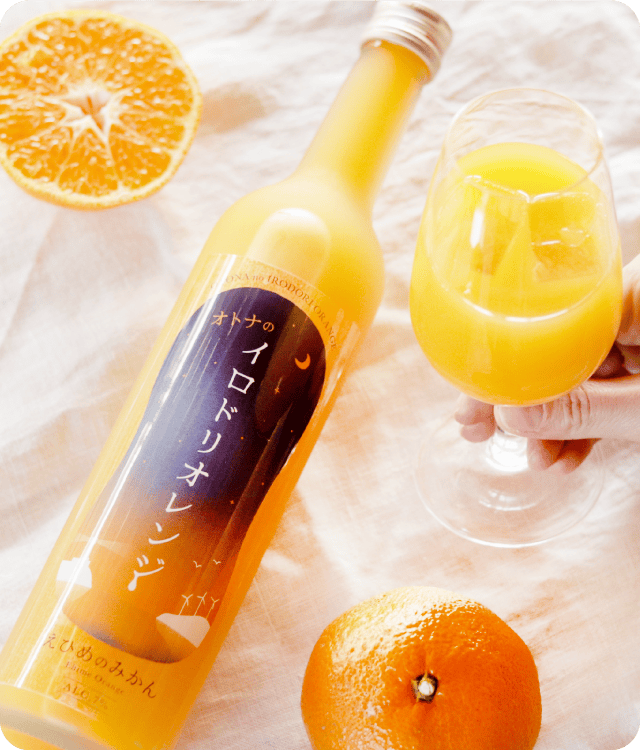 愛媛の豊かな自然が育む、こだわりの柑橘を贅沢に使用した「みかんジュース」と、果実本来の風味を活かしたアルコール飲料「オトナのイロドリオレンジ」をお届けします。